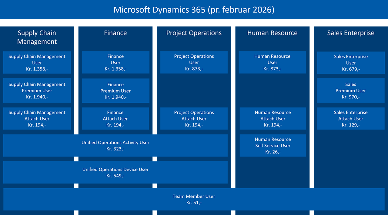 Det samlede pris- og licensoverblik i Dynamics 365-porteføljen.